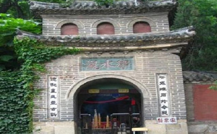 響水觀分南北兩院,進山門即是正殿后土殿。這是一座近十米高的硬山式三楹出廈殿堂,青磚灰瓦,雕梁畫棟,富麗堂皇。殿內供奉著后土、女蝸殿前、觀音等神圣。院內有池塘和五棵合抱粗的大樹,清水綠蔭,滿院生涼。北院有精舍數椽,紅色木柱木棱花窗,幽靜古樸,是道士們的住處和客舍。