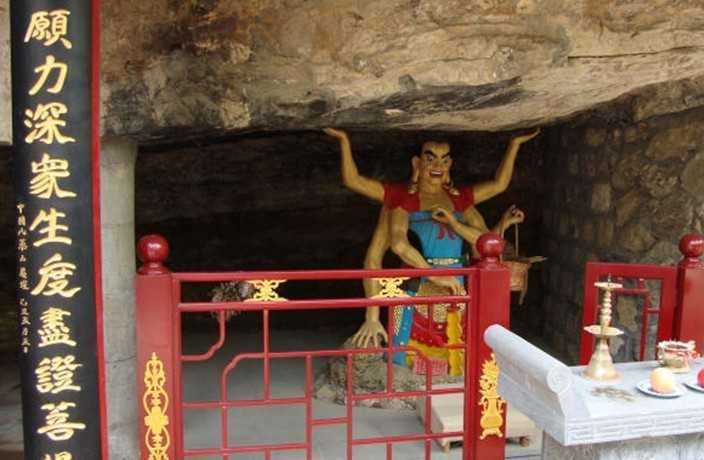 登上裝有石欄板的露臺仰觀勝水寺上院,一塊圓形巨石上現(xiàn)出南閣區(qū)檐。由西山門門洞拾級而上,眼前出現(xiàn)的是一個(gè)古樸的庭院。庭院被巨大的隱仙洞所半吞,殿內(nèi)供奉釋伽牟尼、文殊、普賢、觀音、地藏王各一尊,兩側(cè)為十八羅漢。正殿檐下原懸有歷代名家手書“一洞天”、“慈云永護(hù)”、“圣德參天”等匾額。版權(quán)所有山東聊城聊之旅國際旅行社有限公司,轉(zhuǎn)載必究!據(jù)碑文記載,勝水寺以水勝得名,這“勝水”當(dāng)出自正殿右側(cè)古井,可惜60年代初進(jìn)行國防施工時(shí)水線被截。西禪房附近有天然石鏡,光可鑒人。勝水寺上院左前方高達(dá)8米的南閣,紅墻黃瓦,格外醒目。登閣憑欄眺望,天海茫茫,層巒疊嶂。夏日山雨欲來或雨過初晴之時(shí),在此可見腳下云霧翻涌、飄飄欲仙之景,蔚為壯觀。