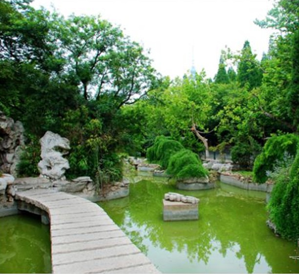 百花苑是島城首座規模較大的紀念性園林。園內地勢錯落起伏,道路迂回曲折,綠樹成蔭,芳草遍地,一派“小橋、流水、人家”的田園風光。一座座名人雕像錯落有致地分布在其中, 或坐、或立,靜悅安詳,栩栩如生如生,平添了許多文化氣息,是人文景觀與自然景觀相輝映的園林精品。