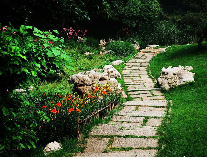 園內山勢起伏,碧草如毯,石徑曲折,花溪蜿蜒,四季樹木蔭翳,春來繁花似錦,一座座名人雕塑錯落有致地分布其中,或坐、或立,靜謐安詳,栩栩如生,平添了許多文化氣息。 在這里人文景觀與自然景觀水乳交融,加之陣陣幽香襲人,絲竹之聲悠揚,如詩如畫,令人陶醉。一對對新人不知為景致所動還是為氣氛所染,總不忘在結婚大喜之日來到這里, 于雪紗翠坪間留下永恒的美好回憶。于是,便有了“碧水映綠樹,美景襯佳人”之說。在喧囂塵世中身心疲憊的都市人閑暇之時來到這里,便仿佛走進了世外桃源,或賞景、或垂釣、或閑坐小酌都會心清氣爽,流連忘返。