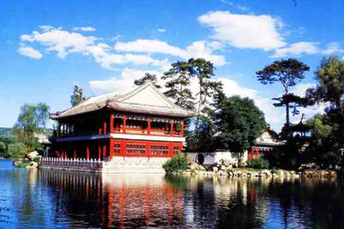 在避暑山莊如意洲之北的青蓮島上。是乾隆十五年(1780)仿浙江嘉興南湖(鴛鴦湖)之煙雨樓而建的。樓自南而北,前為門殿,后有樓兩層,紅柱青瓦,面闊五間,進深二間,單檐,四周有廊。上層中間懸有乾隆御書“煙雨樓”匾額。樓東為青陽書屋,是皇帝讀書的地方,樓西為對山齊,兩者均三間,樓、齋、書屋之間有游廊連通,自成精致的院落。東北為一座八角軒亭,東南為一座四角方亭,西南疊石為山,山上有六角涼亭,名翼亭,山下洞穴迂回,可沿石磴盤旋而上,也可穿過嵌空的六孔石洞,出日嘉門,到煙雨樓。版權所有山東聊城聊之旅國際旅行社有限公司,轉載必究!煙雨樓為澄湖視高點,憑欄遠望,萬樹園、熱河泉、永佑寺等歷歷在目。夏秋時湖中荷蓮爭妍,湖上霧漫,狀若煙云,別有一番景色.乾隆皇帝賦詩到“最宜雨態煙容處,無礙天高地廣文。卻勝南巡憑賞者,平湖風遞芍荷香。”山莊秀美的湖光山色,眾多的瓊樓玉宇,吸引了電影,電視劇的導演們把山莊作為拍攝地,轟動全國的電視劇“還珠格格”就是在此拍攝的。