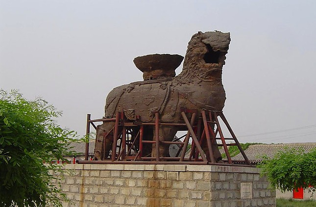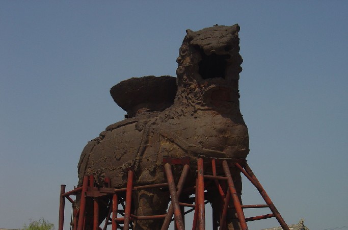 滄州鐵獅子位于滄州市政府駐地東南偏北16.5公里。坐落在東關(guān)村西0.5公里處。鐵獅身高5.78米,長5.34米,寬3.17米,體重約50噸。背負(fù)巨盆相傳是文殊菩薩蓮坐,獅身向南,頭向西南,兩左腳在前,兩右腳再后,呈前進狀,姿態(tài)雄偉,昂首闊步,徐徐如生鐵獅是我國大型的驚巧鑄鐵工藝。也是我國著名發(fā)源的古跡。距今已有一千多年的歷史,它充分的顯示出我國古代勞動人民的智慧和藝術(shù)才華。