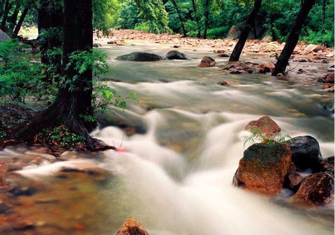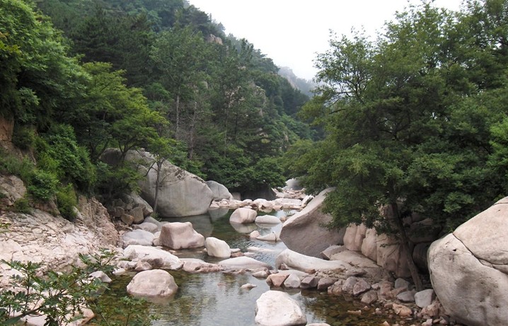 北九水為白沙河中游的峽谷地帶。白沙河發源于巨峰北麓海拔800多米處的天乙泉,始名涼清河,中為九水。