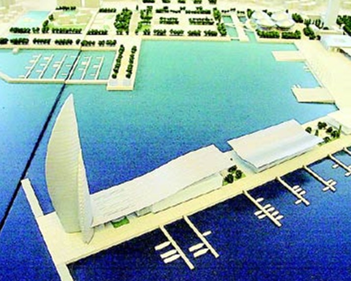 測量大廳碼頭位于港區的兩個港池之間,全長316米,寬度60米,采用沉箱重立式結構。主要功能是為滿足比賽期間的帆船測量要求。賽時的測量大廳將為臨時建筑。