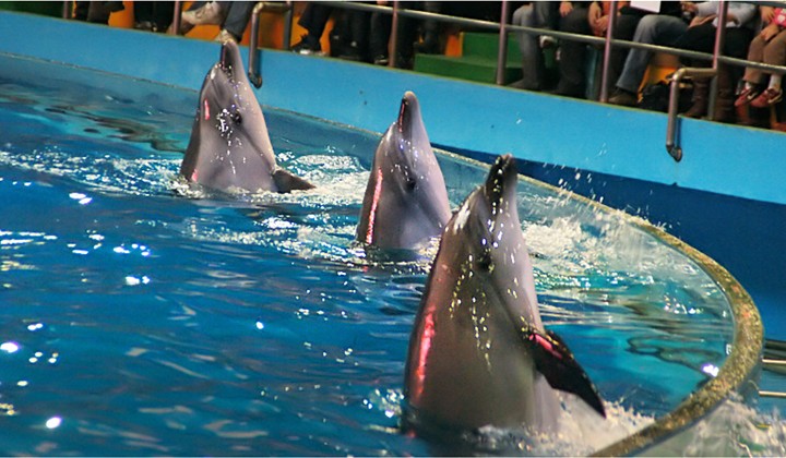青島海豚表演館是由青島市人民政府投資興建的一座綜合性表演場館。1996年在國務院組織的評選活動中海豚館榮登榜首,評為中華之最,被授予“中國第一座海豚表演館”的稱號。2006年2月5日海豚館閉館,后經改造成為青島極地海洋世界歡樂劇場。