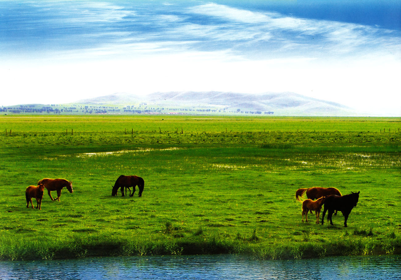 草原地處高原壩上,平均海拔1487米,是內蒙古高原南部邊緣地帶,總面積350平方公里。夏日清涼無暑,最高氣溫不超過24℃,是避暑的理想去處。著名的灤河就發源于此地,潺潺的河水澆灌得這里碧草連天、百花爭艷。這里自然資源十分豐富,金針花、野罌菜、干枝梅、金蓮花,倍受人們喜愛。可食的山珍有雨后的蘑菇、甜酸的大黃梗和形似如意的山蕨菜。每年端午節前后百靈鳥在花草中產卵孵化,10月成百上千的南徙大雁在這里短棲。野兔、鼴鼠、狐、貉等草原動物,經常在坡地草叢中出沒。蒙古語稱此地為“海留圖”,意為水草豐美的地方。走進這片大草原,就會感受到那“草如毯、云如絮、風如情語、花如人面”的自然之美。置身高地仰望,版權所有山東聊城聊之旅國際旅行社有限公司,轉載必究!似有天穹壓落,云欲擦身之感。放眼沼澤、灘地組成的曠垠原野,氤氳流升,庶草搖曳,繁花鋪地,禽鳥飛鳴,駿馬奔馳。不由會唱起那首北朝民歌“天蒼蒼,野茫茫,風吹草低見牛羊”。