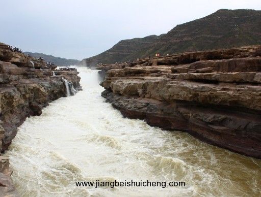 黃河壺口瀑布位于宜川縣城以東35公里,吉縣城西45公里處的晉陜峽谷黃河河床中,已成為世界上最大的黃色瀑布,因其氣勢雄渾而享譽中外。 壺口瀑布,是由于黃河流至壺口一帶,兩岸蒼山夾峙,把黃河水約束在狹窄的黃河峽谷中,河水聚攏,收束為一股,奔騰呼嘯,躍入深潭,濺起浪濤翻滾,形似巨壺內黃水沸騰。巨大的浪濤,在形成的落差注入谷底后,激起一團團水霧煙云,景色分外奇麗。站在河邊觀瀑,游人莫不唱起“風在吼,馬在叫,黃河在咆哮”這威武雄壯的歌聲。