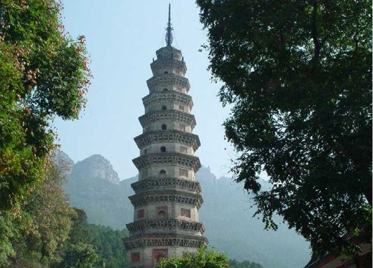 “辟支”出于佛教,音譯為“辟支迦佛陀”,略稱“辟支佛”,辟支塔,意即辟支佛塔。辟支塔為一座八角九層樓閣式磚塔,塔高55.7米,塔基為石筑八角,上有浮雕,鐫刻有古印度孔雀王朝阿育王皈依佛門等故事。塔身為青磚砌就,各層皆施腰檐,下三層為雙檐,二至四層檐下置平座。塔檐與塔徑自下而上逐層遞減,收分得體。塔內一至四層設塔心柱,內辟券洞,砌有臺階,可拾級而上,自第五層以上砌為實體,登塔須沿塔壁外腰檐左轉90度進入上層門洞。塔身上置鐵質塔剎,由覆缽露盤、相輪、寶蓋、圓光、仰月、寶珠組成,自寶蓋下垂八根鐵鏈,由第九層塔檐角上的八尊鐵質金剛承接,在塔內延續到地下,起避雷作用。辟支塔氣勢雄偉、造型美觀、結構復雜、比例適當,呈典型的宋代風格,為靈巖寺標志性建筑。宋代文學家曾鞏有詩贊曰“法定禪房臨峭谷,辟支靈塔冠層巒”。