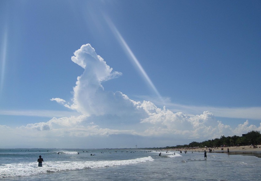 庫塔海灘(Kuta Beach)號(hào)稱巴厘島上最美麗的海岸,這里的海灘平坦、沙粒潔白、細(xì)膩,是個(gè)玩沖浪、滑板的樂園。這里附近有熱鬧的商業(yè)街,各色巴厘傳統(tǒng)手工藝品、絢麗民族服裝展示,而且還有大型百貨商店買到各類商品。它過去只是巴塘至布吉伯寧蘇拉之間的一個(gè)小村子,現(xiàn)在已經(jīng)成為繁華的旅游勝地。