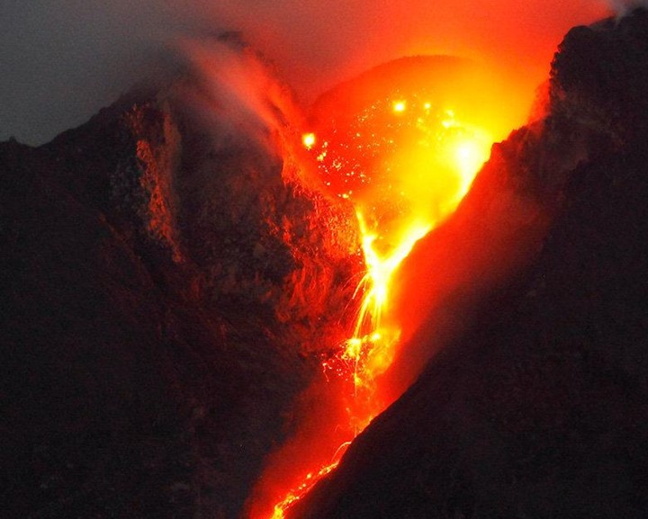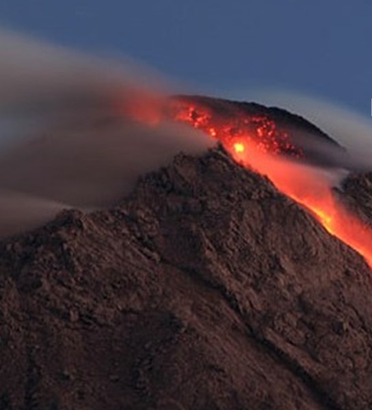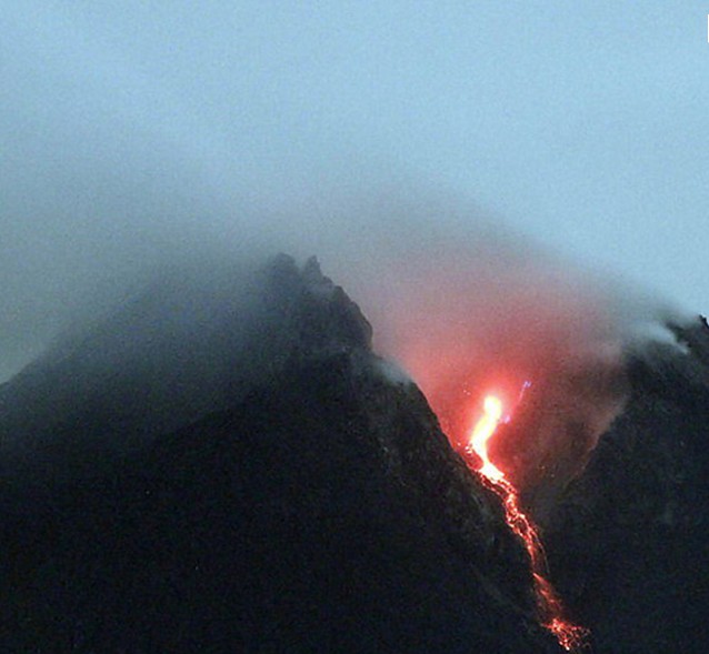 默拉皮火山位于印度尼西亞爪哇島的中部。在日惹東北32公里,海拔2911米,默拉皮意為“不滅之火”,是一個錐形火山,也是印度尼西亞活動性最強的火山,1006年首次爆發,山頂粉碎,毀滅了中爪島的一個王國。埋沒世界七大奇觀之一的婆羅浮屠佛塔。1548年以來又噴發68次,平均兩三年噴發一次,每次都有傷亡。火山距離日惹市相當近,山麓居住著幾千人,有的村莊在海拔1700米的高處,當地居民遵行一種古老的儀式,每年都在火山口旁邊牲口供祭,以期安撫默拉皮山的神靈,但死亡依然頻頻降臨。由于其威脅人類居住地的安全,被國際地球化學和火山學協會列為應當加強監督與研究的全球16座火山之一。