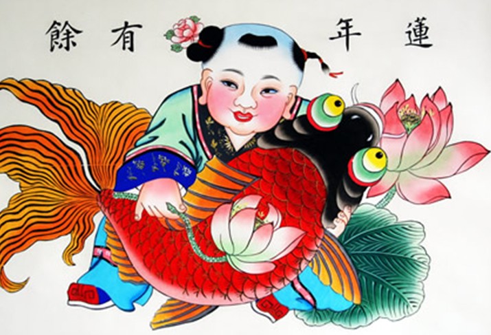 楊柳青年畫題材的一大種類便是娃娃。這些娃娃體態豐腴、活潑可愛。他們或手持蓮花;或懷抱鯉魚,都象征吉祥美好,非常惹人喜愛。