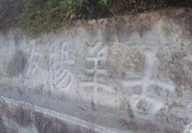 “古羊腸坂”題刻:在古碗城西南約50米,坂道西邊的二級峭壁上,高0.8米,寬3米,有清同治間摩刻的“古羊腸坂”四字,每字0.5米見方。