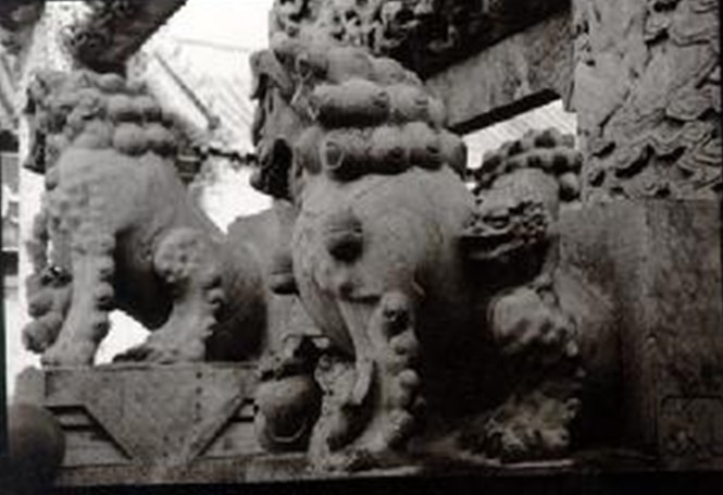 百獅坊俗稱張家牌坊。位于牌坊街中段。1778年為贈文林郎張蒲妻朱氏而建,全石結(jié)構(gòu),高14米,寬9米,四柱三間五樓式,正間單檐、次間重檐、歇山頂、 斗拱交錯,戧角起蹺,通體雕刻。正間樓檐下六朵斗拱,次間上下檐下各三朵斗拱。全枋上下間架有致,搭配均衡,雕刻的獅子、云龍、牡丹、吻獸、象尊等,均惟妙惟肖,栩栩如生,剛?cè)嵯酀?jì),神態(tài)協(xié)調(diào)。