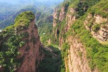 峽谷群有三大景色:一是奇峽。谷底狹深、峽岸壁立、成群出現(xiàn),構(gòu)成了太行奇觀;二是峻峰。周圍山峰都是幾近90度的紅崖絕壁,峰巒疊嶂,上下錯(cuò)落,形成了高低變化,犬牙交錯(cuò)的天際線;三是飛瀑。黃巢巖下有一奇特而又壯觀的瀑布,瀑布不是飛流直下,而由懸崖頂一深潭中翻騰而出,山泉奔流至此,鉆入一石甕,泉水在甕中回旋而出,從數(shù)十米高的峭壁上飛濺而上。站在瀑布之下,水聲、風(fēng)聲驟起,一股清風(fēng)寒沁人入五臟,令人備感舒暢。