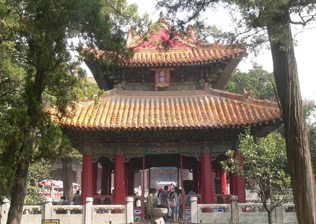 杏壇是孔子教育光輝的象征,位于大成殿前甬道正中,傳為孔子講學之處,壇旁有一株古檜,稱“先師手植檜”。杏壇周圍朱欄,四面歇山,十字結脊,二層黃瓦飛檐,雙重半拱。亭內細雕藻井,彩繪金色盤龍,其中還有清乾隆“杏壇贊”御碑。亭前的石香爐,高約1米,形制古樸,為金代遺物。版權所有山東聊城聊之旅國際旅行社有限公司,轉載必究!該壇建于宋代,四周環植以杏,故名;金代又于壇上建亭。明代后期重修,即今日杏壇。