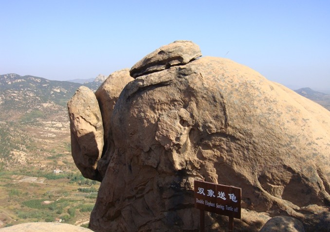 鶴山,因東峰有巨石似形仙鶴而得名。山體以石布景、以景稱奇。世界懸謎“水鳴天梯”、“招鶴回鳴”絕世無雙,令人倍感神奇!“棲鶴梳羽”、“仙宮秋月”、“鶴山曉鐘”、“鶴鳴煙雨”、“杏林飛霞”、“仙臺(tái)凌空、“梧桐金井”、聚仙門、滾龍洞、一線天、沐浴盆等景觀更令游人樂而忘歸。登峰東眺,海天一色,山色云氣相映,猶如身臨仙境。