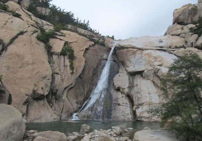 又稱玉龍瀑。在嶗山南部八水河中游,北距上清宮約1公里。周圍巖壁峭立,八水河至此,沿20米高、10余米寬的絕壁懸空倒瀉,噴珠飛雪,狀如玉龍飛舞。瀑布落下十幾米,與石壁相擊,分數股跌入潭中。碧水凝寒,清澈見底,潭旁巨石上鐫“龍潭瀑”三字。大雨過后,山洪暴注,飛騰叫嘯,更為壯觀,故有“龍潭噴雨”之稱。周至元有詩贊曰:“凌空亂濺沫,疑是玉龍飛。白掛虹千仞,青山環一圍。拋來珠落落,舞處雪霏霏。游客貪清賞,斜陽不忍歸。”