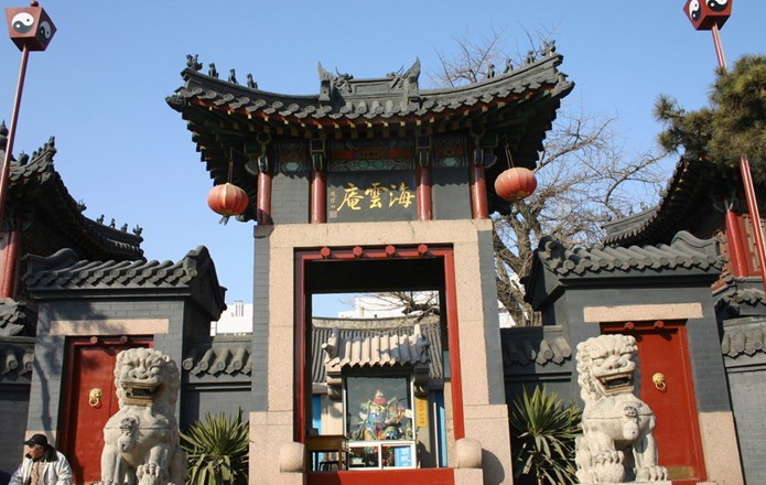 海云庵是四方民俗旅游區(qū)的重要景點(diǎn),為青島著名的明代建筑,占地800平方米。一進(jìn)院落,外以灰垣相圍,內(nèi)有大殿、東西配殿、東西廂房和鐘樓、鼓樓。庵內(nèi)一株高大的古銀杏枝繁葉茂,環(huán)境十分清靜。庵內(nèi)大殿供奉觀音大士,左右配殿分別供奉龍王、關(guān)公、比干、老君、魯班等。1923年重修時(shí),增建鐘、鼓樓各一座,近年又在庵前辟建廣場,是青島市區(qū)唯一一座開展宗教活動(dòng)的道教廟庵。海云庵自建成以來,香火一直旺盛,尤其每年正月十六廟會(huì)期間,四鄉(xiāng)八鄰趕廟進(jìn)香,熱鬧非常。廟會(huì)上尤以鄉(xiāng)親們用山楂、紅棗、山藥、桔子制作的各式糖球?yàn)樽疃啵熘饾u形成了以糖球?yàn)樘厣膫鹘y(tǒng)廟會(huì),人稱"海云庵糖球會(huì)"。