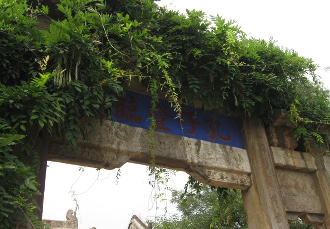 此坊聯在一天門坊稍北孔子登臨處坊柱上,刻于明嘉靖三十九年(1560),“文革”中已毀。坊柱高280厘米,字徑20厘米,楷書。