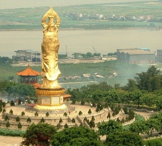 沿梵音亭前行為觀音院,為蓮花山風景區山下的第一座佛教寺院,也是觀世音菩薩的北方中心道場。始建于清朝雍正元年,初名觀音行宮,是齊魯名寺之一。2004年6月重修,2005年6月竣工開放,并易名為觀音院。院旁有觀音閣,位于觀音廣場三層平臺之上,也是觀音道場的標志性建筑。觀音閣于2005年開始設計、施工,包括地下、地上兩部分,地下宮殿供奉9999尊觀音立像,地上部分觀音閣總高27.6米,三重飛檐,閣內樓梯可達二層,閣內觀音金身立像,由設計制作無錫靈山大佛的南京油畫雕塑院制作,像總高15.38米,底部蓮花座高2.19米,直徑6.19米,高大雄偉。