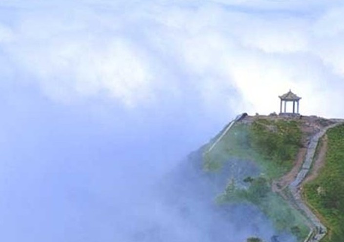峰頂有月觀亭。月明星稀之夜,在這里但見皓月當空,天地蒼茫,實為世間少見的美景。亭北有兩石相對,仿佛山門,便是西天門。西天門純粹是自然形成,非人工雕琢而成。