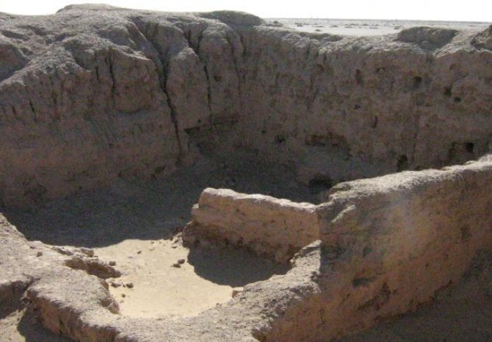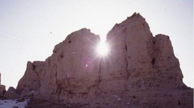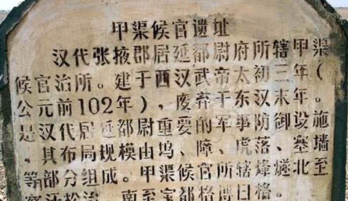 甲渠候官遺址俗稱破城子,位于額濟納旗南24公里,納林、伊肯河之間的戈壁灘上。為漢代居延都尉西部防線甲渠塞之長——甲渠候駐所。發(fā)掘前,遺址大部分為砂礫掩沒。往西300米,南北排列“一”字形烽燧和雙重塞墻遺跡。