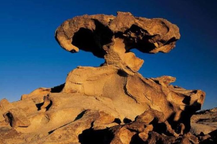 石頭有了靈動,石浪凝為立體。仁者見仁,智者見智,抒發著自己的情感,開發著自己的想象。像:海獅、蜥蜴、駱駝、鴕鳥……無所不像。人們悉心地給每一個浪朵定義自己的思考……人們踏浪潛行,面部的洋溢浸在額頭下滑汗水的流淌里。手中的定影設備忙碌著定格瞬間的奇思妙想和發現,生怕轉瞬即逝。 當那一涓流水清亮的和緩地淌過,這時的“海”有了“溝”意義的概念,版權所有山東聊城聊之旅國際旅行社有限公司,轉載必究!人們順著水流把目光推向目力能及的遙遠,水流延伸著溝的神奇。 在石頭的猙獰里,我擁有的詞匯是謙虛的、蒼白的,嘆服自然的鬼斧神工有了缺陷的不足。每一狀樣的石頭,乃至這一海的石峰浪谷均經歷過不知幾許歲月蒼天的拷問,今夕何年?這大漠荒原的深處奔騰著立體的、狂嘯的、諾大的、鬼魅翩躚的,一個石頭的海洋。 一個牧人家庭依巖而建,獨守著這方圣石、圣土、圣水,夜以繼日傾聽著海的驚濤,石的訴說,浪的鼓涌,水的潺緩……人們沒有盡興,萬事古難全。天邊那一輪不高的斜陽,紅紅的臉膛,變得深刻發紫,默默無語敦促著人們無限的回望……我認定這里就是一個石的海洋,請按著我的思路放飛想象吧,豐富你的神往吧。 口中默頌一個神奇,癡迷的所在“神石溝”再見了。 你是一個永恒的、立體的、凝固的海洋,是生命死后的夢境,是詮釋生命或者靈魂的雕塑。