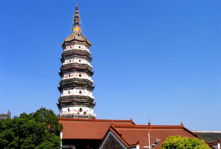 二高:振風塔高60.86米,居高遠眺,方圓十里之美景盡收眼底。面江而立,享有“萬里長江第一塔“美譽。振風塔不但高在藝術結構上,層與層之間比例相差有甚強的藝術風格,自底層向頂呈圓錐形,每層按比例逐漸縮小,改變了以往佛塔建筑的方正直硬規律。仰望曲線柔美,嵌空玲瓏,如金锏剌空,直沖霄漢。