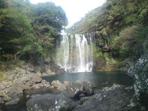 從濟州市外巴士車站乘坐發往西歸浦的巴士(5。16號或者是西部產業公路號)大約走一個小時就到終點站。 在西歸浦市外巴士車站下車之后, 打的(起價即可)也行, 坐天地淵方向八路車到終點。