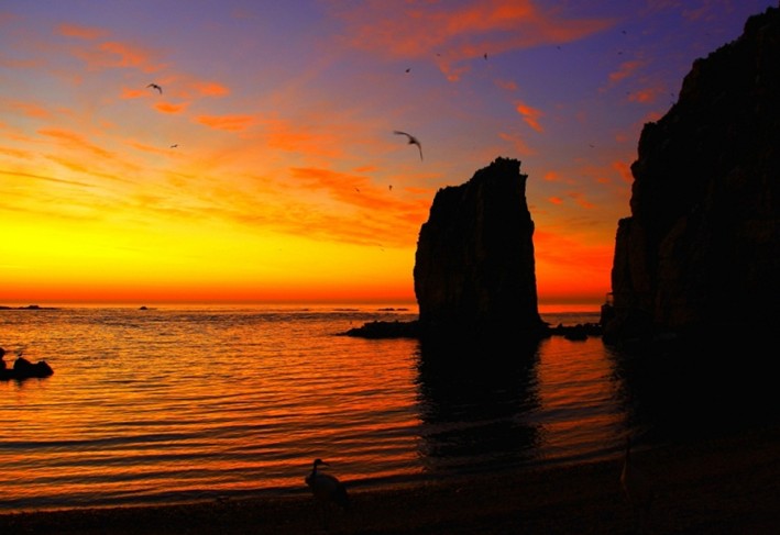 海驢島被千萬年來不知疲倦的海浪沖刷雕蝕得危峰兀立、怪石嶙峋,與起落的海潮、連天的波濤、精靈似的鷗鷺共同構成風景獨特的海島風光,令人遐思不斷、流連忘返!