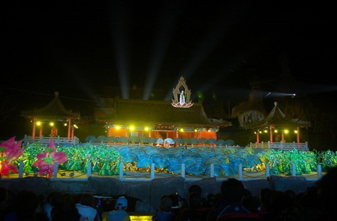 “神游華夏”——世界首個360度旋轉行走式大型山水實景演藝,首創360度旋轉巨輪觀眾席;