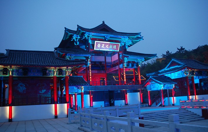 《神游華夏》大型演藝,是由山東威海華夏集團斥資3.2億元,邀請著名導演趙安聯手打造的世界首個360度旋轉行走式大型山水實景演藝劇場。