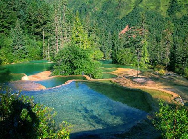 浮煙山有七泉。西南邊最大的泉叫補生泉,泉水味甘,用此水煮飯、沏茶均有香味,若是煎藥服之,對陳疾舊癥有奇效,故名補生泉。七個泉水匯積于一塘,塘水清澈見底。岸邊有巨柳、葛藤。若向南尋去,在第六澗有四泉,其中有三泉的水從沙中靜靜地涌出,沒有什么奇異,唯第四泉是從石盆型的石頭中涌出,瀉下時迂回曲折于亂石間,水聲潺潺如琴音,大風吹來,激響益振,遂名聲泉。這個地方最引人入勝,流水與斷續的蟲鳴相雜,尤有雅趣。