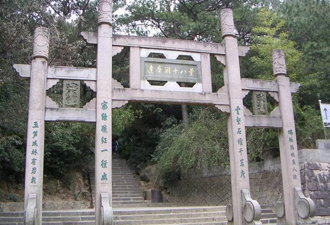 將十八景之說刻于達(dá)摩洞外的一面巖壁上,它們?yōu)檫_(dá)摩面壁、南極升天、山猿守峽、古鶴巢云、仙人巨跡、福壽泉圖、蟠桃滿塢、玉筍成林、蟻艇渡潮、漁燈普照、獅子戲球、金蟾出洞、伏虎馱經(jīng)、神龍聽法、鎧甲卸巖、慈航架壑、八仙巖洞、千佛梵宮。