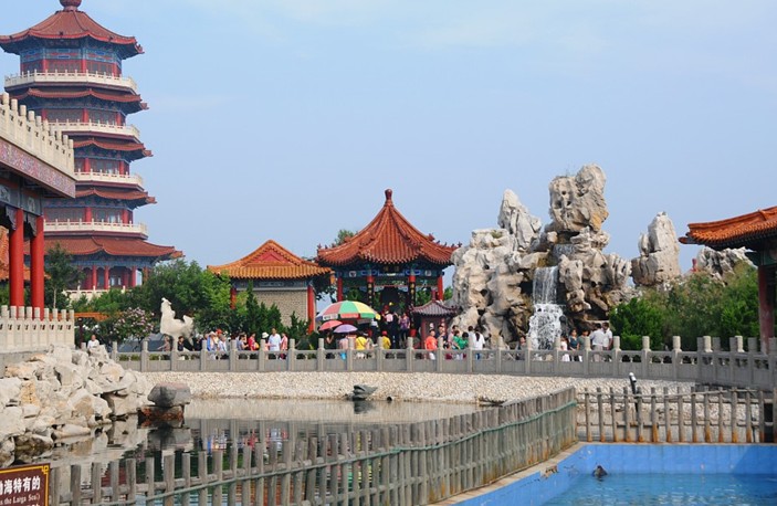“望瀛樓”三個(gè)字是當(dāng)代書壇泰斗啟功先生所題。據(jù)司馬遷《史記》記載,在東海之濱有三仙山,蓬萊、瀛洲、方丈,山上住著仙人,還有長(zhǎng)生不老之藥,山上的亭臺(tái)樓閣均是黃金白玉所做,登此樓就可望到海上仙山。望瀛樓由六層組成,水上四層,水下兩層為海洋世界。海洋世界展示了幾百種珍奇的海洋生物,其中大海龜數(shù)十只,鯊魚有數(shù)百條,最大的有近3米長(zhǎng)、重達(dá)300多斤,尤其是大鯊魚有了雅興,它格外慷慨的允許我們景區(qū)的潛水員和它手拉手一起遨游大海,令人嘆為觀止。