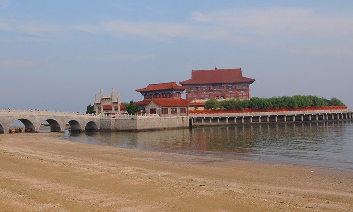 位于海水浴場(chǎng)東側(cè)海中,西與蓬萊遙遙相望的八仙渡海口,是根據(jù)八仙過海神話傳說填海新建的景區(qū),填海面積3.3萬平方米,如果從空中俯視恰似丫腰葫蘆一般。游龍起伏脊的南部外墻,龍首位于正門兩側(cè),墻體內(nèi)側(cè)嵌有諸神如甲子神、日游神、夜游神及生肖圖案等漢白玉浮雕70余方。景區(qū)內(nèi)建有民族風(fēng)格古典式建筑的大型八仙過海漢白玉照壁、流軒、挹清軒、八仙祠、三星殿、財(cái)神殿、放鶴亭、環(huán)形步廊等,樹立各種雕塑20余尊,道教神仙100余尊奉伺在此。