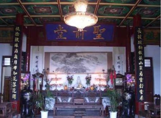 圣箭堂自古以來多為住持居住,又稱為方丈室。堂內陳列百壽屏一座,集“壽”字篆書一百多個。堂內柱子上有明末清初住持永覺禪師撰的楹聯:“長披破衲傲溪山,笑看云舒云卷,祗念數珠 消歲月,那知花落花開。”