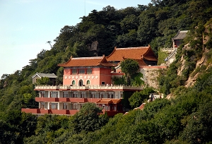 從蓮花嶺進山,轉過刻有“入勝”兩個巨字的大石,經過四正門徑、元寶石、迎客松,便到了下盤。下盤以秀水著稱,有水質凜冽甘美的涓涓泉、名曰滴水瀨的流瀑和被譽作“立沛甘露 ”的紅龍池。盤山第一大寺天成寺也建在這里,此寺始建于唐代,后經重修,現廟門匾額上的“天成寺”三字出自乾隆親手筆。寺仙正殿“江山一鑒閣”面澗背崖,雕梁畫棟版權所有聊城聊之旅旅行社有限公司,轉載必究,古樸雅致。閣西有座8角13層淺黃色舍利塔,它結構精巧,風姿綽然。