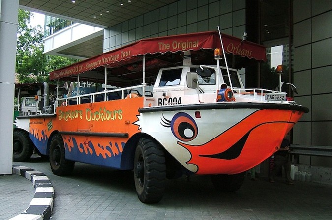 “鴨子船”極受游客歡迎,香港人愛(ài)把乘“鴨子船”沿新加坡河的觀光稱(chēng)為“游車(chē)河”,在新達(dá)城乘坐鴨子船,陸地將經(jīng)過(guò)世界大戰(zhàn)紀(jì)念碑,在水上欣賞薛爾思橋及魚(yú)尾獅的噴水景觀。