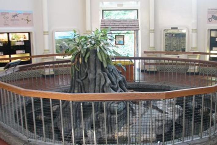 爬蟲園采納的是開放設計概念,飼養的園地都布置成為原始叢林沼澤河床,讓爬蟲有如回返自然生態環境,自由爬行或游水。而在不同角落或展覽館里,有15英尺長的大鱷魚、四腳蛇(大蜥蜴)、四方外觀的烏龜、超過百歲的老巨龜、有毒的眼鏡蛇、巨蟒、細如線般的青蛇、多色彩的壁虎、白里透紅的小青蛙等,此外,也有一個可讓游人與蜥蜴近距離對看或撫摸的開放式蜥蜴園。