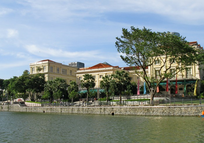 1864年建於皇后坊的亞洲文明博物館 (Asia Civilisations Museum),早期是英國殖民地以及現任政府的辦公大樓,有著濃厚的英式新古典主義風格的建筑。進入該博物館內,重點在介紹新加坡歷史源流,當游人進入展廳,曾是沿著新加坡河岸發展的新加坡,不斷有中國帆船、印度船、 阿拉伯獨桅帆船、葡萄牙戰艦和武吉士人(Bugis)的縱帆船造訪這個質樸的海港,館內過往的影像面對窗外運河龐大商船吞吐的海港,今非昔比的繁華景象,形成了一個強烈的對比。這就是亞洲文明博物館企圖讓訪客深入了解新加坡的特殊文化。19世紀英人萊佛士爵士為拓展英國在亞洲的貿易發展,奠定了這個小漁港的未來發展。
