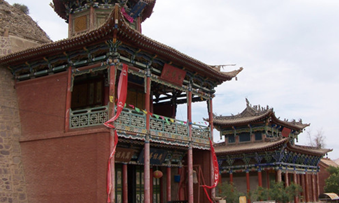 寺南約100米,傍河而建觀河樓,登樓俯視,滔滔湍流,盡收眼底。寺內(nèi)有大雄寶殿、三清殿、財(cái)神閣等文物古跡,享有中華之最的景電一期工程一泵站就坐落在這里。