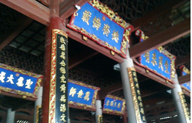 現存廟宇建于咸豐元年十二月至四年六月,按中軸線自南至北依次為外門埕、欞星門,泮池,左右有廊對列,大成門的樓廳,東、西有殿廡對列,月臺、大成殿、后照壁等,占地7552平方米,建筑面積4000平方米。解放后,曾作為學校、紅衛商場、少年宮等場所。1961年9月被福州市人民委員會公布為第一批市級文物保護單位;1996年9月2日被福建省人民政府公布為省級文物保護單位。欞星門亦稱先師門。現存石構件屬明代所建。六柱三開間,對稱布局,每根柱腳用兩塊夾桿石前后對夾鎖固。東西兩翼墻上鑲嵌著“江漢秋陽”、“金聲玉振”聯句石刻,花崗巖,長2.62米、寬0.73米、楷書、陰文。大成門古稱戟門,面闊五間,進深二間。中三間屋面高出兩邊間,青石抱鼓石3對,石檐柱八根。大成門左內側豎著《咸豐元年重建福州碑記》石碑二方,通高2.68米、寬0.84米、厚0.21米,郭柏蔭撰文并書寫190字碑文,版權所有山東聊城聊之旅國際旅行社有限公司,轉載必究!劉永松篆書碑額,匠蔣學心。站立二碑前,靜心凝視陰刻的碑文會逐漸地凸現出來,呈現陽文碑刻的奇異效果。左右出檐殿廡各11間連接大成殿是辟作《孔子圣跡展》和《福州教育史展》的兩個展廳。 孔廟曾列為“圣地”,跨街設有經年關閉的宮門,額題“江漢秋陽”、“金聲玉振”等。東西宮門均立下馬碑,上書漢滿文字“文武官員至此下馬”字樣。殿內四根石柱用材碩大,每根約3.2萬斤。文廟作為清代古建筑,其中石構件的欞星門(即先師門)為明代所建,1961年列為福州市級文物保護單位;1963年9月2日列為福建省級文物保護單位;2006年5月25日被國務院列為第六批全國重點文物保護單位。編輯本段祭孔活動 從大成門到了大成殿門口,月臺之上,擺放著蓋有紅布的桌子,正中是模擬的豬、牛、羊三牲。這可是皇帝祭天所用最高規格的祭品,誰可與帝王相比?孔子也。