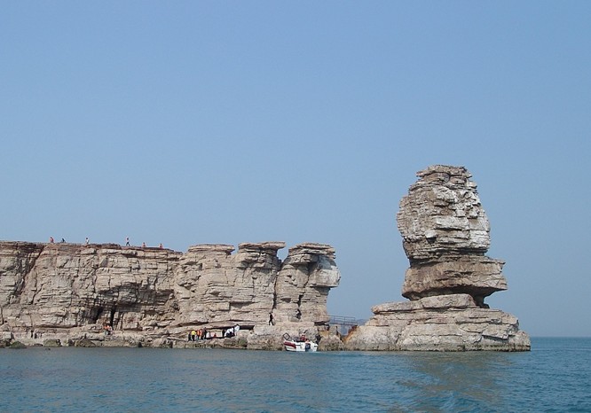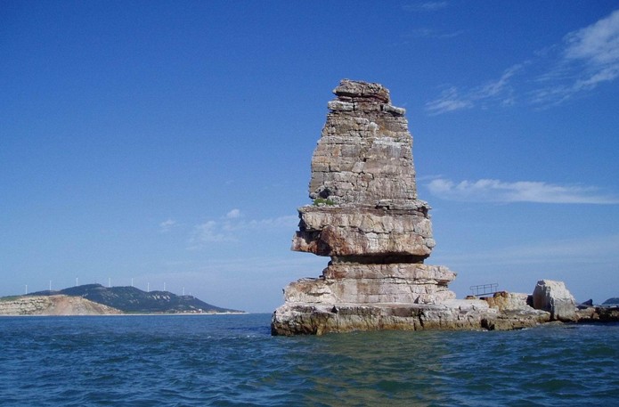 寶塔礁,因礁石似寶塔而得名,位于廟島西北處的犁具把島,高約21米,直徑約5米,其狀巍然,寶塔礁無論從哪個角度觀賞,都像一座挺立的巨塔,變換不同的位置,會領(lǐng)略出不同的天工神韻,讓人覺得處處皆奇。