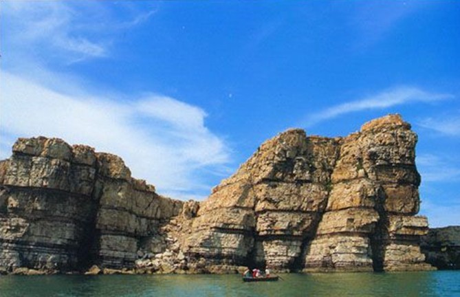 島之東北角有兩塊突兀的礁石,版權所有山東聊城聊之旅國際旅行社有限公司,轉載必究!一高一低,高的約39米,低的約30米,遠遠望去,酷似大海上升起的兩張風帆,名曰石帆礁,也稱姊妹峰,漁民叫它“兩棵桅”。高山島的西南角,有一條長50米的海蝕洞名曰“鎖龍洞”,傳說這里是仙人懲罰龍王三太子的地方。此洞前后連通,洞深幽長,第當海浪涌進,便會發出深厚凝重的“嗡嗡”聲。高山島的本南角是全島最陡峭的地方,人稱“摩天嶺”,奇妙的是:高陡的崖壁到了底部卻突然懸空,共有4根粗壯的石柱支撐著,將島的一角分成4個洞口,洞洞相連,從任何角度看都象大象鼻的造型,稱為“象鼻洞”。高山島也是鳥的天堂,堪稱“萬鳥島第二”。高山島的美景可以用這樣的詩句來概括:“列嶂參差煙霧薄,一山環繞水云間”“南瞻大海波濤涌,北顧高峰蒼翠浮”。