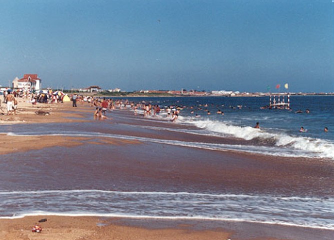 海陽海岸線長130公里,其中度假區,也就是被稱為“萬米海灘”的海岸曲折綿延20多公里,沙細、浪穩、坡緩、水清,是國內最好的海灘之一,海灘底質全部為沙質,且沙粒均勻,平整如毯,是天然的海水浴場。1984年,原中共中央總書記胡耀邦視察此地,欣然揮毫題下了“海陽萬米海灘浴場”。占地面積1600畝的沿海防護林沿萬米海灘海岸呈條狀布局,海灘與松林呼應,成為綠色屏障。這里的海灘可作日光浴、沙灘排球;海水可游泳、沖浪、馳船;翠綠的松林可休憩、嬉戲。沿海岸向陸地地勢由沙灘過渡到小平原、丘陵,依次漸升,可建別墅、公寓、療養院。在此地看日出,觀海潮、尋海市,充滿無窮的遐想。