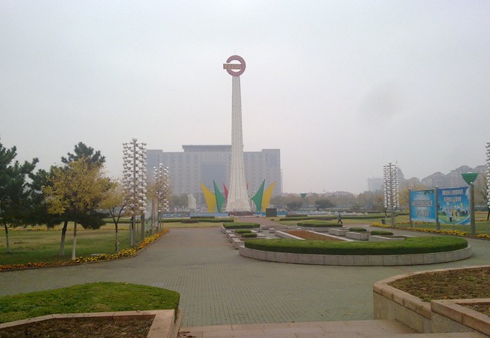 天地廣場位于煙臺經(jīng)濟(jì)技術(shù)開發(fā)區(qū)中心,北臨長江路,南接珠江路,占地24萬平方米,1994年開工建設(shè),1998年竣工開放。廣場以綠為基調(diào),突出自然植物主體,點綴雕塑、小品等人工景物。中軸線將廣場分成南北兩個觀賞群,以表達(dá)天地廣場的含義。北為與“天”有意的“太陽”廣場,中心向外采用放射狀道路,以形似陽光,南為與“地”有意的“大地”廣場,中心圍以規(guī)劃的環(huán)狀道路,以形似大地。