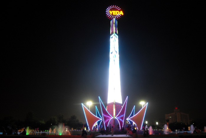廣場上豎立著中國煙臺經(jīng)濟(jì)技術(shù)開發(fā)區(qū)的區(qū)標(biāo),碑體高33米,呈三角立體形,頂端放置高5米的圓形不銹鋼區(qū)徽,圖案是大寫“C”的中央嵌有“YTETDZ”字樣,即“中國煙臺經(jīng)濟(jì)技術(shù)開發(fā)區(qū)”的英文縮寫,立題為開放明珠閃爍,與日爭輝;碑體周圍六帆風(fēng)順,八泉競涌,取意為激流勇進(jìn),興旺發(fā)達(dá)。版權(quán)所有山東聊城聊之旅國際旅行社有限公司,轉(zhuǎn)載必究!植物主要為草坪、樹叢、花臺和花木,其中綴以各色彩燈,更增添了幾分絢麗。休閑時光,徜徉在這綠色的植物海洋中,可以盡情享受美好生活的無限樂趣。