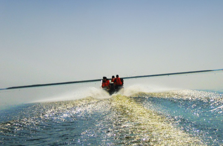 烏梁素海水域南北長(zhǎng)、東西窄,其形狀如一頭海豚頂著一顆水球,南北長(zhǎng)35~40千米,東西寬5~10千米,湖岸線(xiàn)長(zhǎng)130千米;湖盆淺平,略由北向南傾斜,平均水深0.9米,最深處有4米,蓄水量2.6億立方米左右。站在湖濱向里望去,只見(jiàn)遼闊的湖面微微鼓起,呈現(xiàn)出大湖的氣派;如遇風(fēng)天,風(fēng)雖不大,但湖面涌起波浪,湖水拍打湖岸,使人有面臨大湖的體味,甚至?xí)a(chǎn)生一些類(lèi)似大海的印象。湖水蒸騰量非常大,湖面上升氣流格外強(qiáng),宜開(kāi)展水上飛傘運(yùn)動(dòng)。