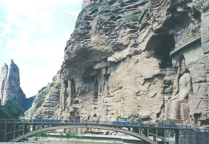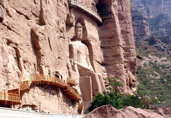 中國的佛教石窟。位于甘肅省永靖縣城西南35千米的小積石山中。炳靈寺在魏晉時稱唐述窟,唐代稱靈巖寺,宋代始稱炳靈寺。炳靈寺文物保管所為其行政管理、文物研究和旅游接待單位。今存窟龕196個,分布在上寺、下寺、洞溝、佛爺臺等處。炳靈寺石窟現(xiàn)存早期重要的洞窟為169 窟,為一天然大洞穴,窟內(nèi)存西秦時的造像和壁畫。造像有第6號龕的一佛二菩薩,龕側(cè)墨書題記有“建弘元年歲在玄枵三月廿四日造”即公元420年,為中國石窟紀年題記最早者。題記下方繪有數(shù)排供養(yǎng)人,其中有當時高僧曇摩毗和道融的供養(yǎng)像。另外,還有第9號龕的3身立佛,7號龕殘存的一身立佛,17號龕僅存的菩薩及龕下部的半跏菩薩思惟像等,形象古樸,為早期造像中的精品。23號龕的并列5身禪定坐佛,則顯示出西域造像藝術(shù)的影響。該窟的西秦壁畫題材內(nèi)容十分豐富,有說法圖、維摩詰變、無量壽佛、釋迦多寶佛、彌勒菩薩及十方佛、千佛、飛天、伎樂、供養(yǎng)人等,畫風質(zhì)樸,粗獷。石窟分上寺、洞溝、下寺三處,以下寺最為壯觀。它們分布在長200米,高60米的懸崖上。炳靈寺石窟現(xiàn)存窟龕196個,石雕像694身,泥塑82身,壁畫900多平方米。最大的唐代彌勒坐佛高達27米,最小的雕像高10厘米。其中,西秦開鑿的有2窟1龕,北魏開鑿的有8窟25龕,北周的有2窟,隋代的2窟,唐代的有20窟113龕。唐代作品藝術(shù)成就最高,當時僧人達到3000多人。該窟中的西秦建弘元年(公元420年)名僧法顯的墨書題記,是國內(nèi)石窟中保留最早的紀年題紀,對全國其他古老石窟的斷代提供了標識,版權(quán)所有山東聊城聊之旅國際旅行社有限公司,轉(zhuǎn)載必究!具有十分重要的歷史價值。窟龕造像和壁畫以169號自然窟大坐佛以及崖面中所有的眾多中小型窟龕構(gòu)成主體。169號窟古稱唐述窟,現(xiàn)稱"天橋洞",高15米、深8米、寬20米,為已知中國開鑿最早、保存最好的洞窟。窟內(nèi)有佛龕、石雕、石胎泥塑三類造型。171龕,位于石窟懸崖上,有唐代石胎泥塑的彌勒佛大坐像一尊,依山雕鑿,高達27米,雄渾莊嚴。窟中西秦《文殊菩薩問疾圖》,是中國目前所見時代最早的一幅維詰經(jīng)變圖。原16號窟,現(xiàn)歸位在石窟群對面睡佛殿內(nèi),長8.6米的泥塑炳靈寺臥佛,是中國現(xiàn)存北魏時期的唯一一尊臥佛,具有非常重要的研究價值。高25厘米的唐代侍女造像,是中國現(xiàn)存石窟像中最為珍貴的一尊,充分體現(xiàn)了盛唐風貌。炳靈寺入口處懸崖旁邊佇立著峻峭的姊妹峰,周圍有鴛鴦洞、藥水泉等勝境,山清水秀,峰險石峻。